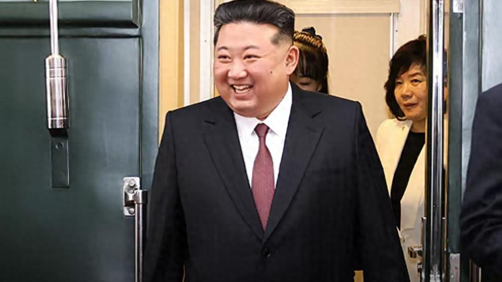 金正恩在专列上想记者挥手